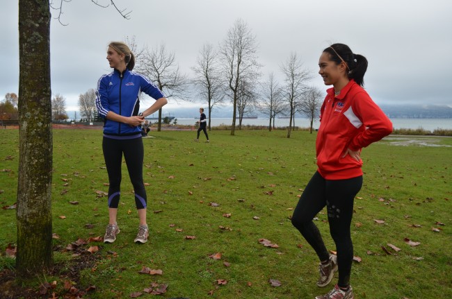 Megan (left) and Karley (right) Rempel. Sisters competing in the Canadian Cross Country Championships.